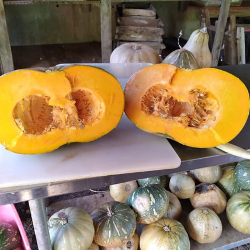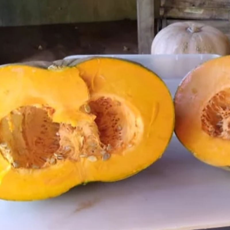 Productive giant pumpkins (3-15 lbs) with creamy orange flesh. Ideal for gardens and commercial production. Harvest in 70 days. 12 seeds/packet. Guaranteed shipping.