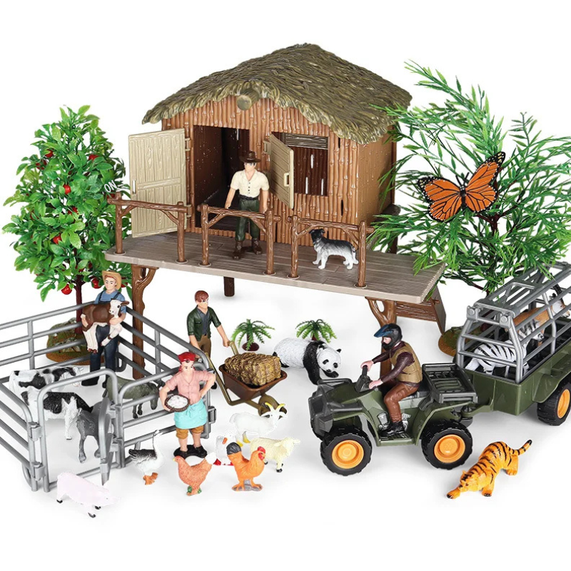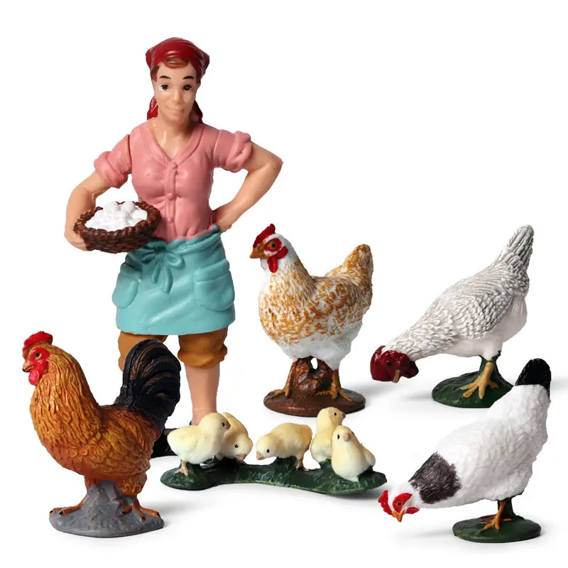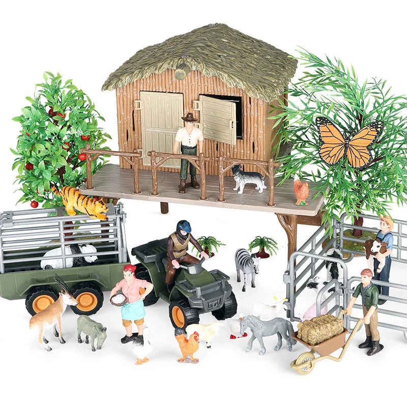 - Complete Set : Including a farmer, a motorcycle, a cow, a chicken, a pig and other animals to form a lovely farm model.
