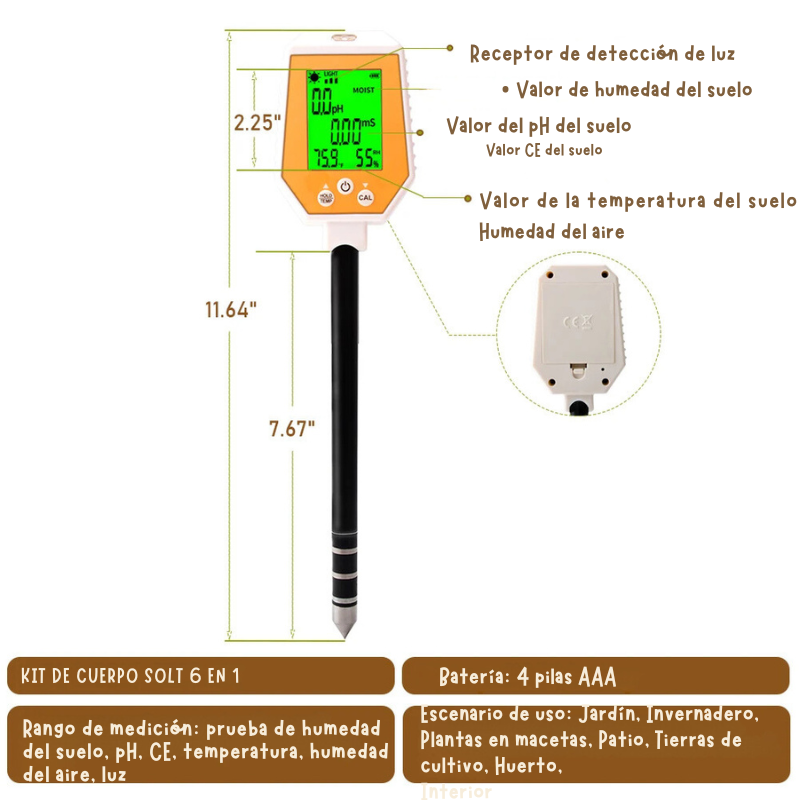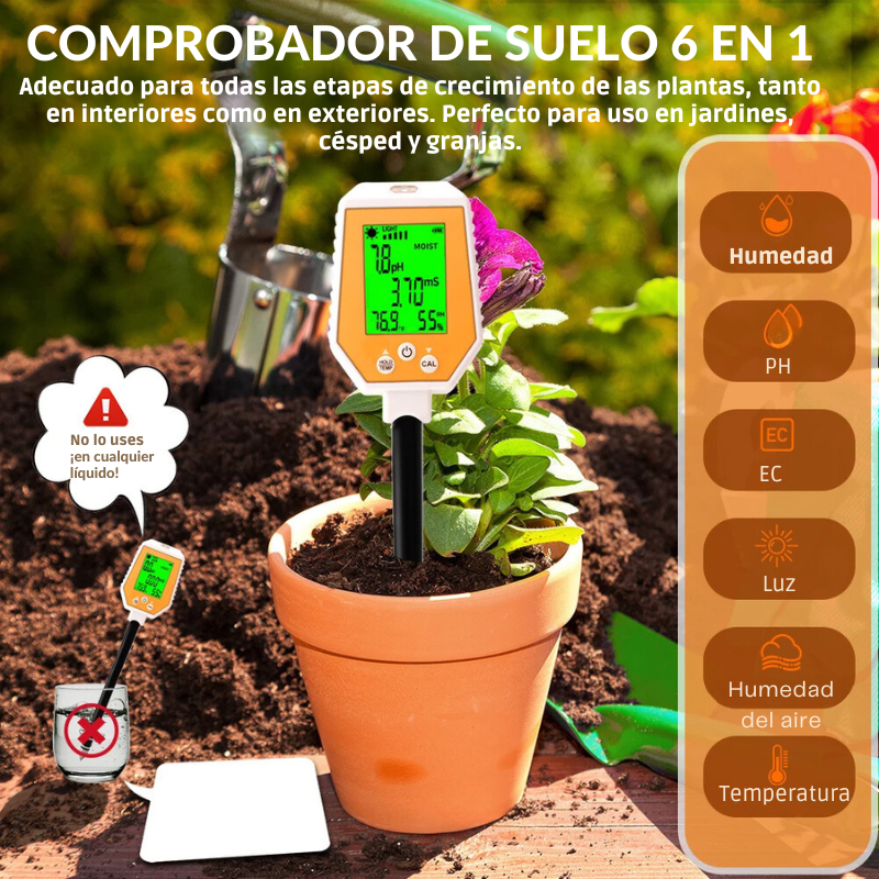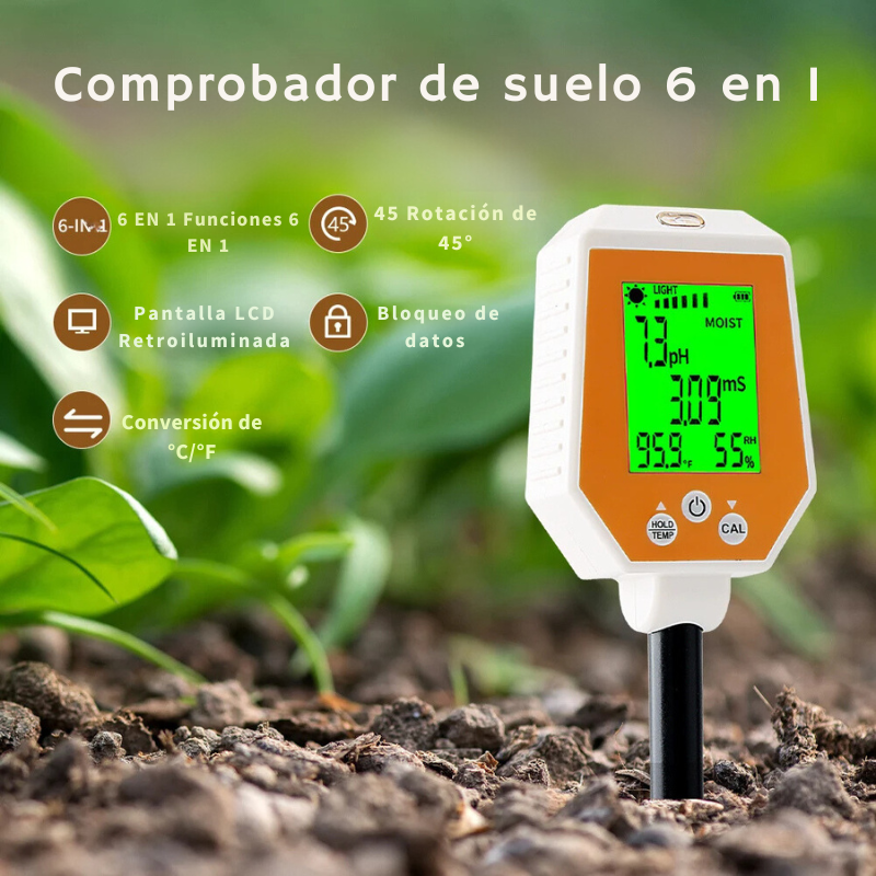Optimize your crops with the 6-in-1 Soil Tester, the ultimate tool for gardeners and farmers looking for complete control over their plants.