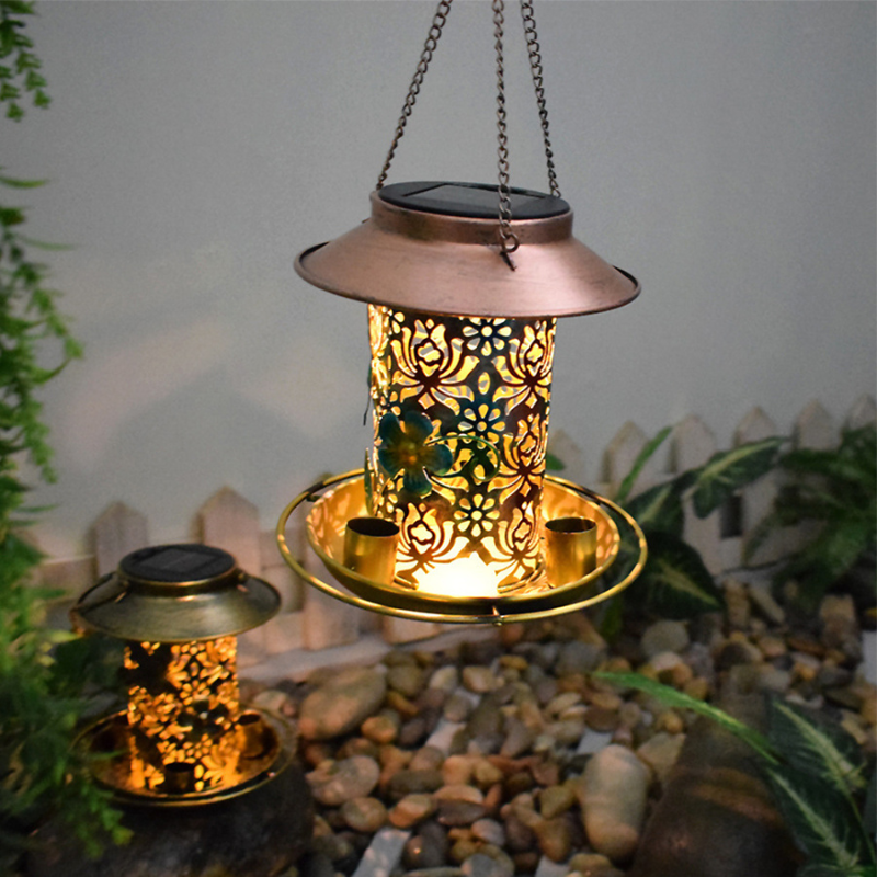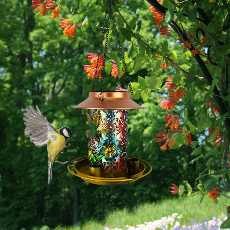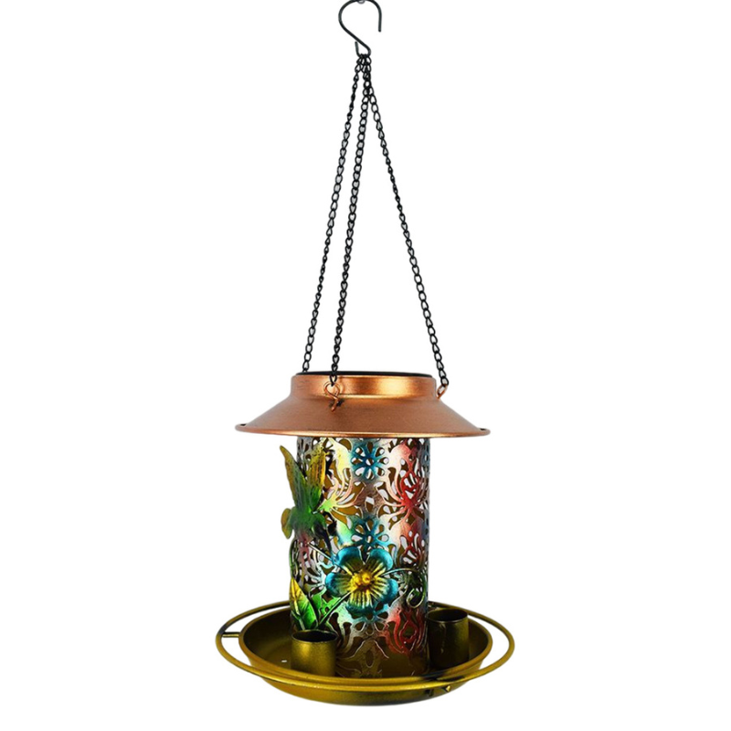 Luz Nocturna Práctica: Además de ser un comedero, su atractivo diseño permite que funcione como una luz nocturna, iluminando tu jardín sin necesidad de carga adicional.