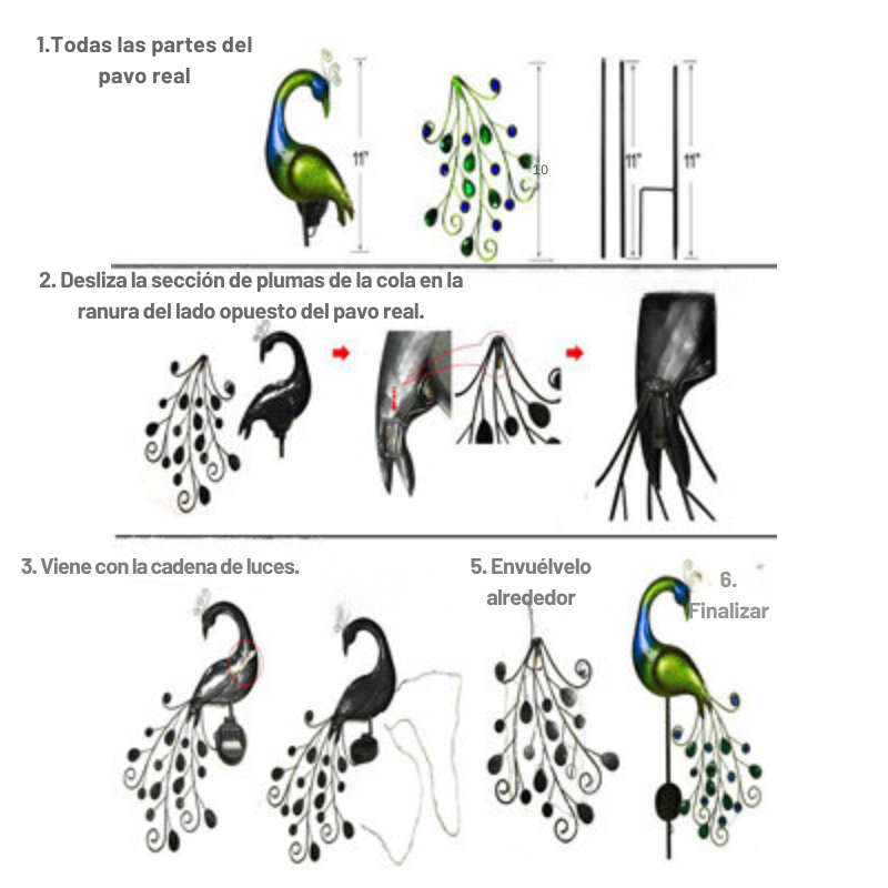 - Fácil de Montar: Su diseño intuitivo permite una instalación rápida sin necesidad de tornillos. Simplemente desliza las plumas de la cola en su lugar y envuelve las luces alrededor.